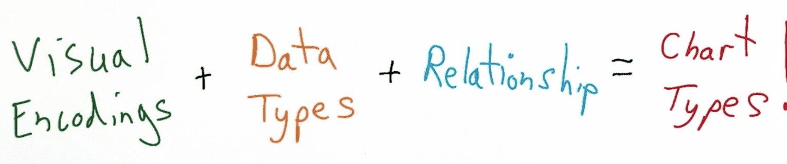 - Retinal variables (e.g. size, orientation, color saturation for ordered data or color hue, shape, texture for nominal data)
