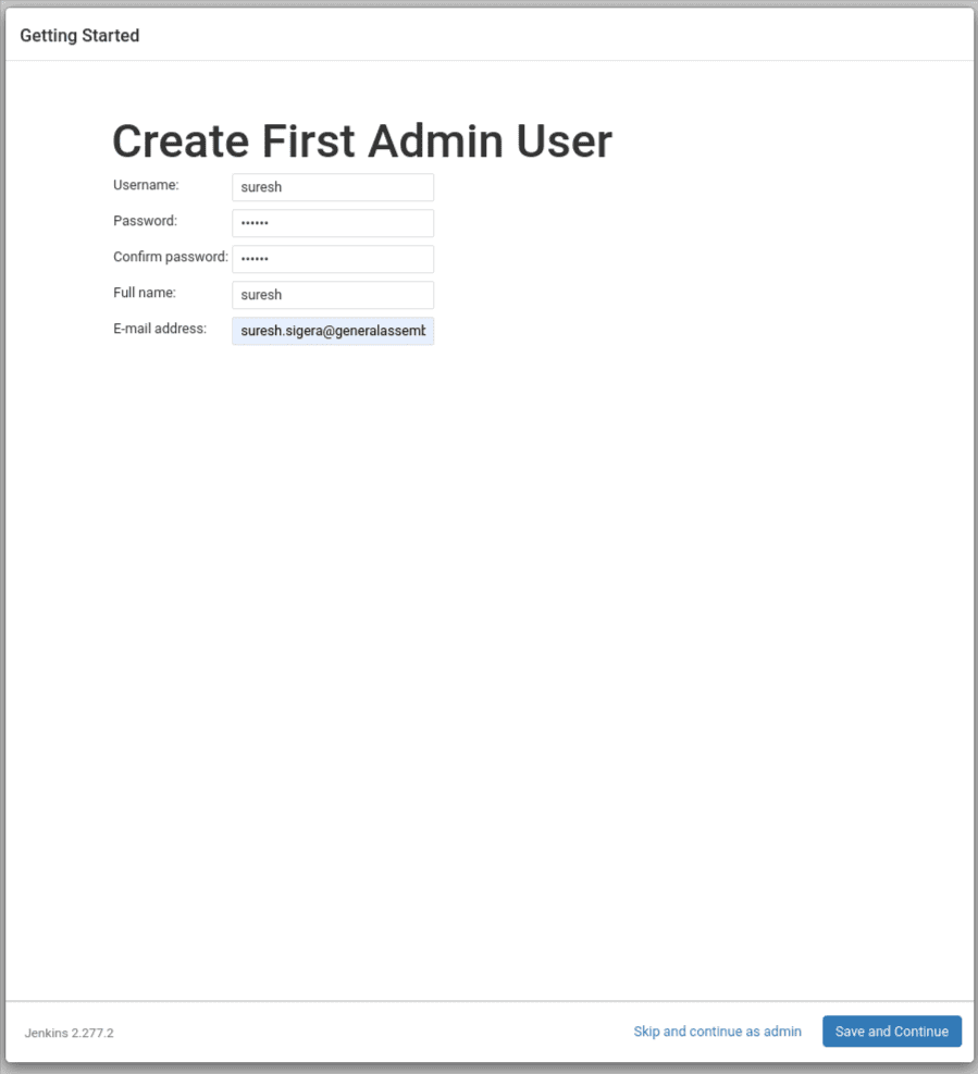 docker exec jenkins-lab cat /var/jenkins_home/secrets/initialAdminPasswordto get the password) -